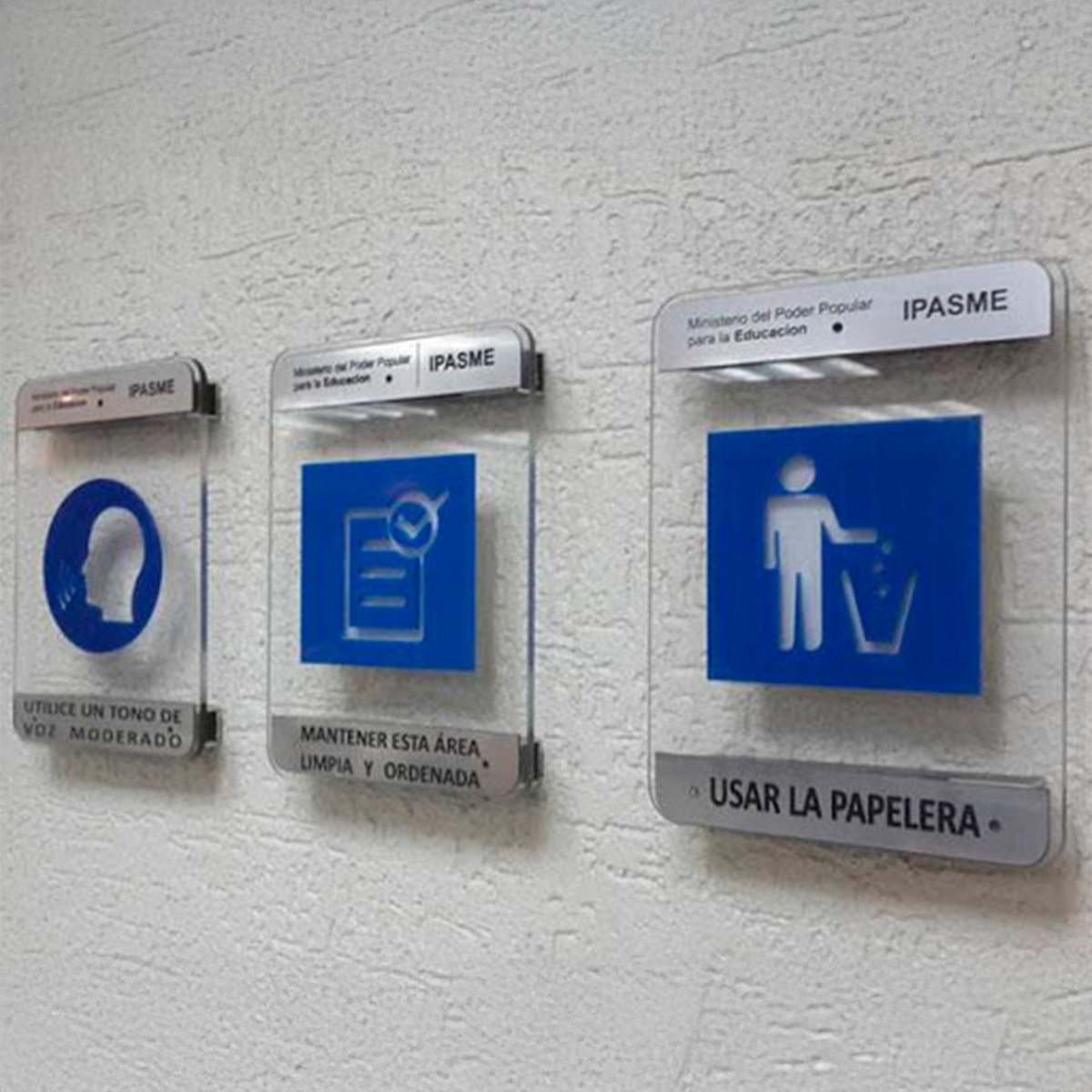 Creamos señales personalizadas para todo tipo de especio: edificios, centros de salud, escuelas, oficinas y plazas comerciales. Fabricadas en PVC, aluminio, acrílico, cristal, y otros materiales de alta calidad, nuestras señalizaciones combinan diseño, funcionalidades y durabilidad, garantizando una comunicación clara y una imagen profesional en cada entorno.