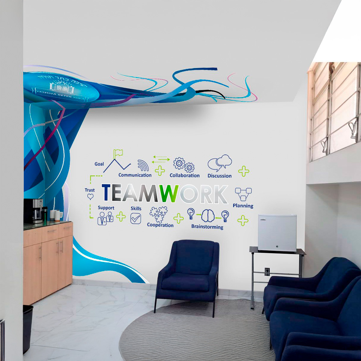 Transformamos espacios con diseños gráficos impactantes en paredes y muros. Desde oficinas hasta puntos de venta, nuestros murales comunican tu marca con estilo, creatividad y presencia.